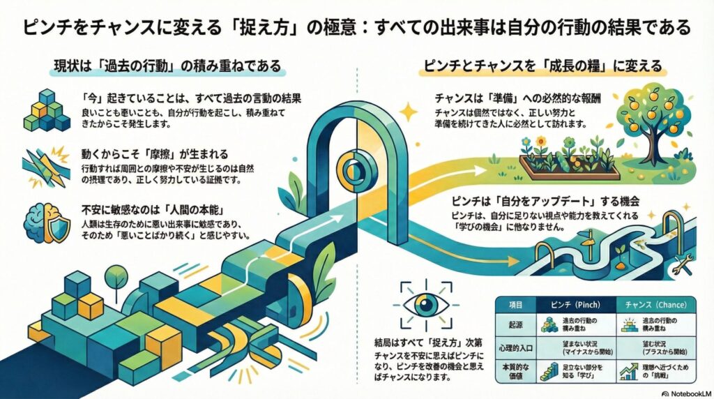 ピンチが訪れたら、なにかを改善するチャンスだったり、状況を別の視点から見ることでチャンスに変える。