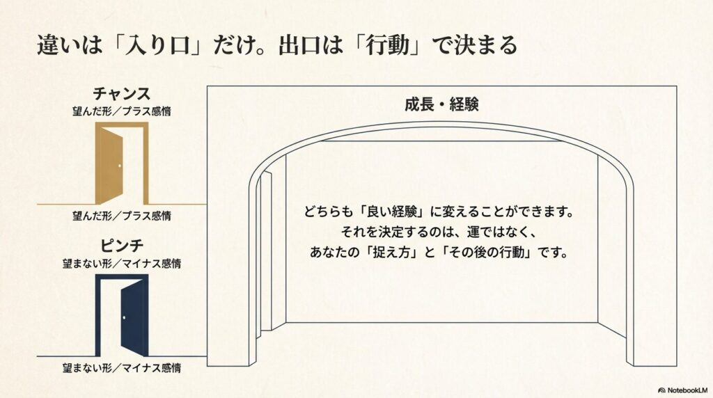チャンスであっても、尻込みして失敗を不安に思ってしまえば、それはピンチと変わらないでしょう。