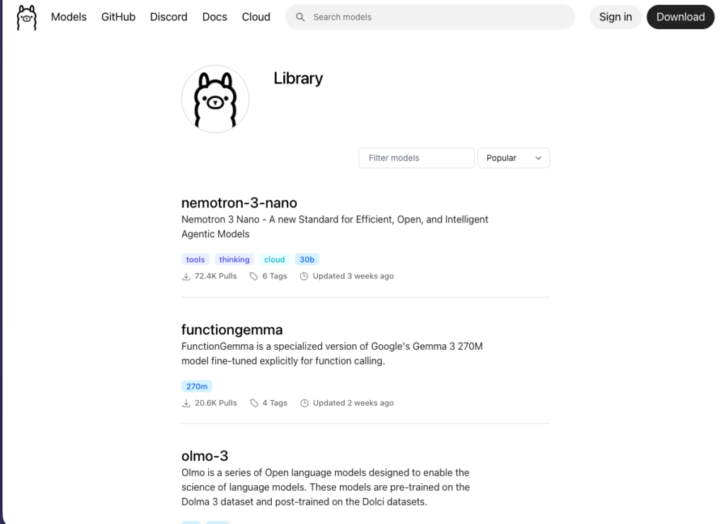 ダウンロードはOllama経由です。