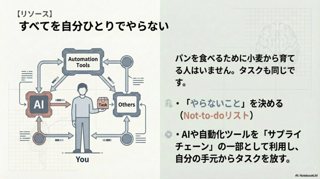 それ以外の「やらないこと」を、協力してくれる人やサービス、ツールにまかせてしまえば良いのです。