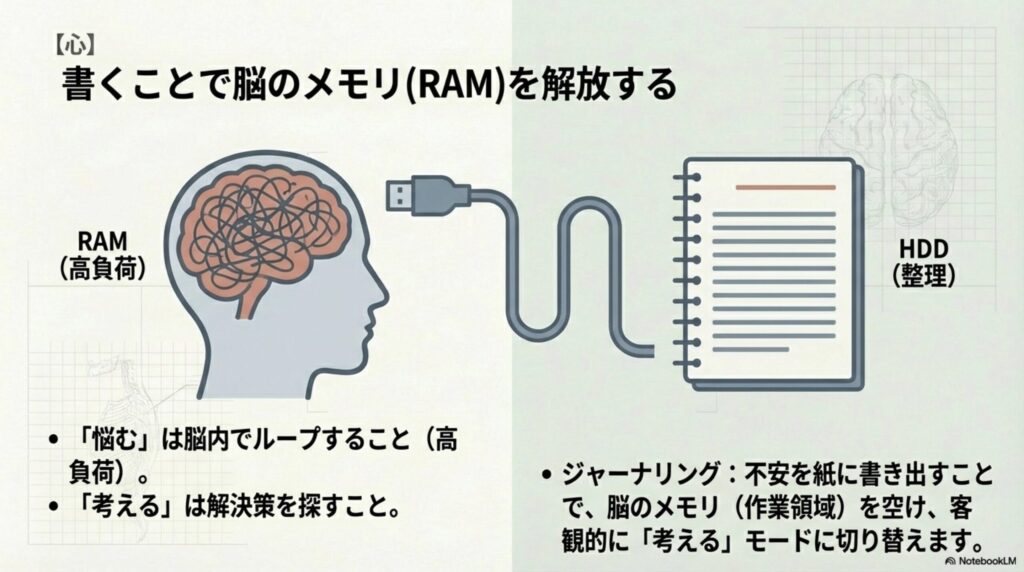 2:【書き出す】不安やタスクを書き出し、脳のリソースを解放する。
