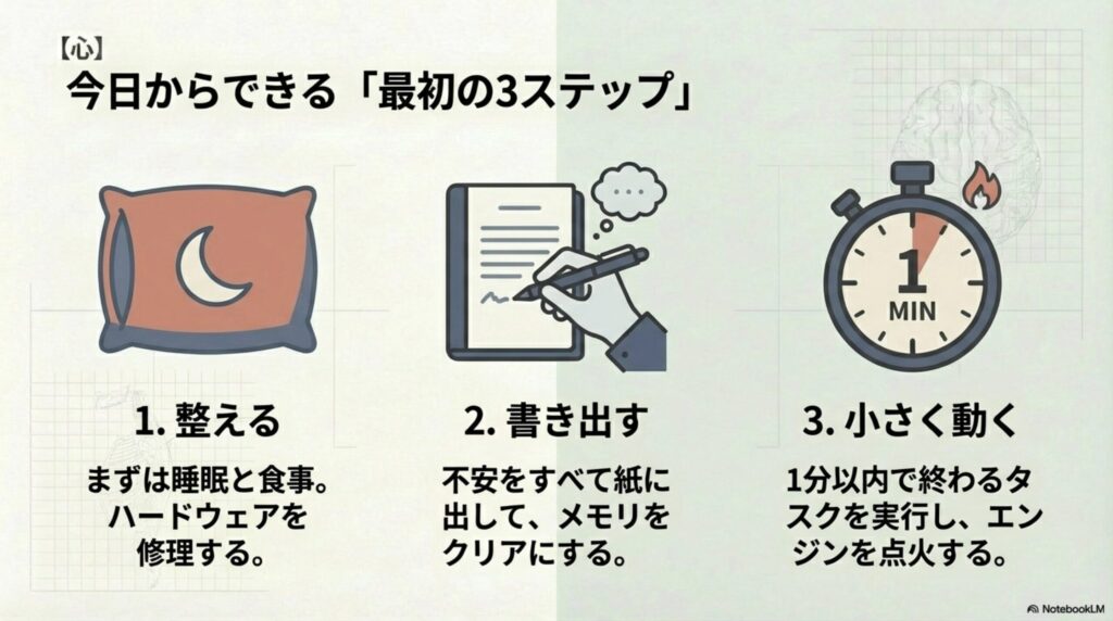そういう時は、「今日は何もしない」と決めて早く寝ることも、立派な科学的解決策の一つです。