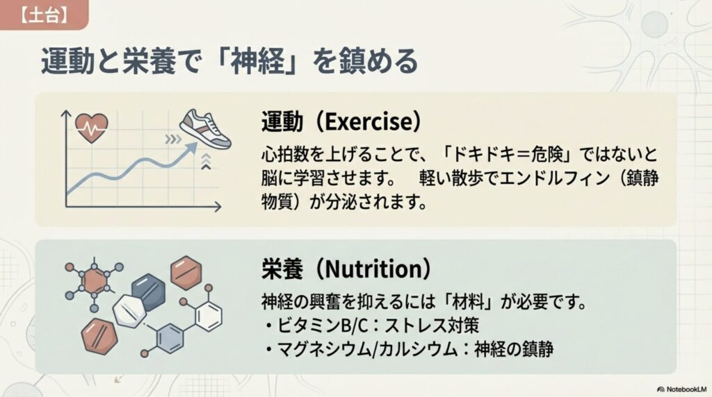 「心拍数が上がることは異常なことではないよ」と、脳に教えてあげる効果が運動にあるのです。